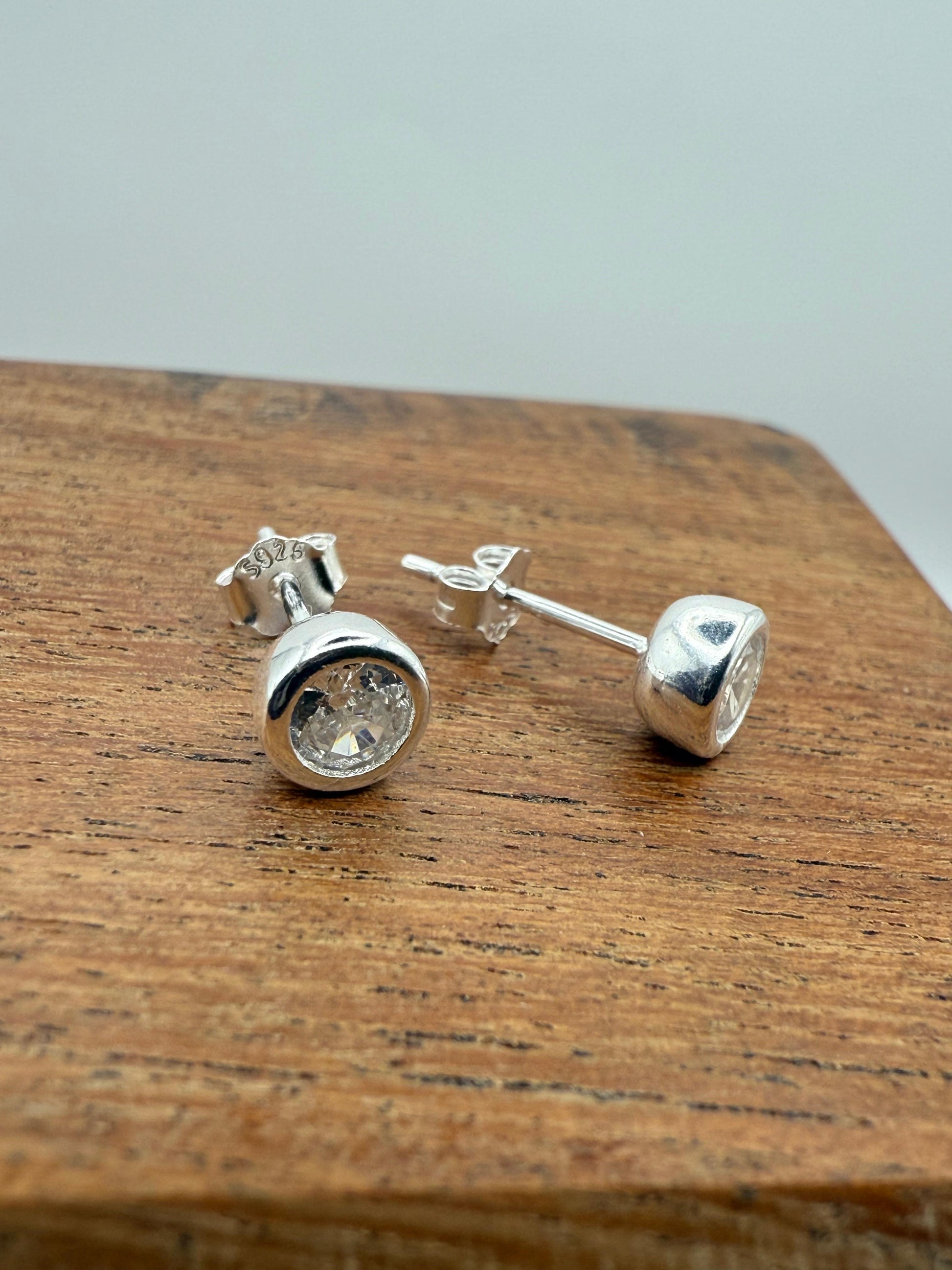 Achieve a look of modern refinement and brilliant sparkle with the elegant 4mm Round Tube Cubic Zirconia Stud Earrings, expertly crafted from high-quality 925 sterling silver. These studs feature a single, sparkling 4mm round Cubic Zirconia (C/Z) stone, a perfect size that offers noticeable brilliance without being overly large. The stone is set within a sleek, polished tube bezel or cup setting, a contemporary style that fully encircles the gem. This secure and minimalist design highlights the stone's radiance and provides a comfortable, durable, and hypoallergenic option for a chic everyday staple.