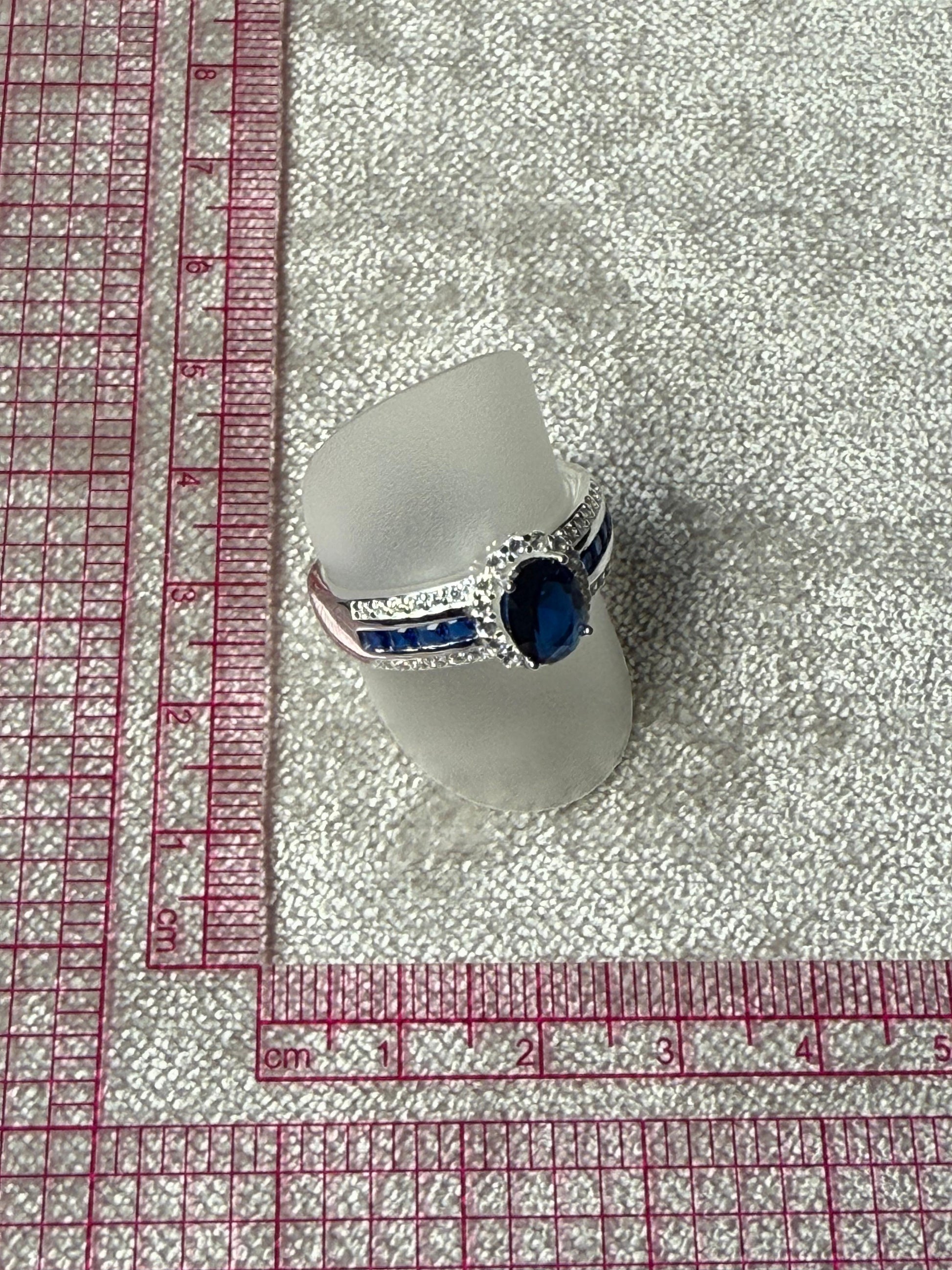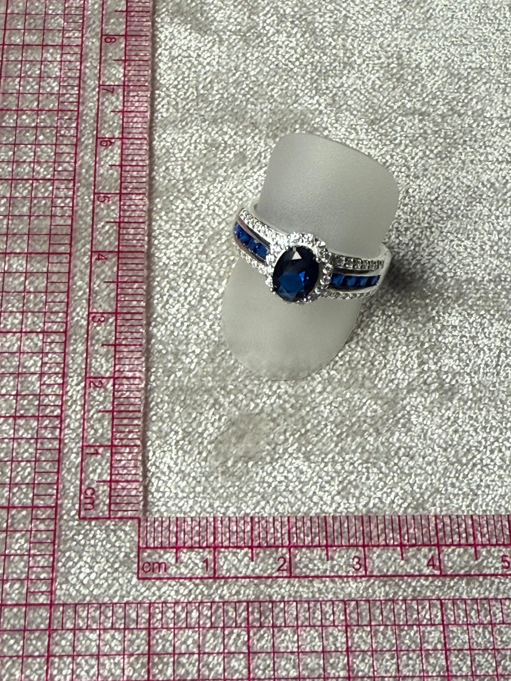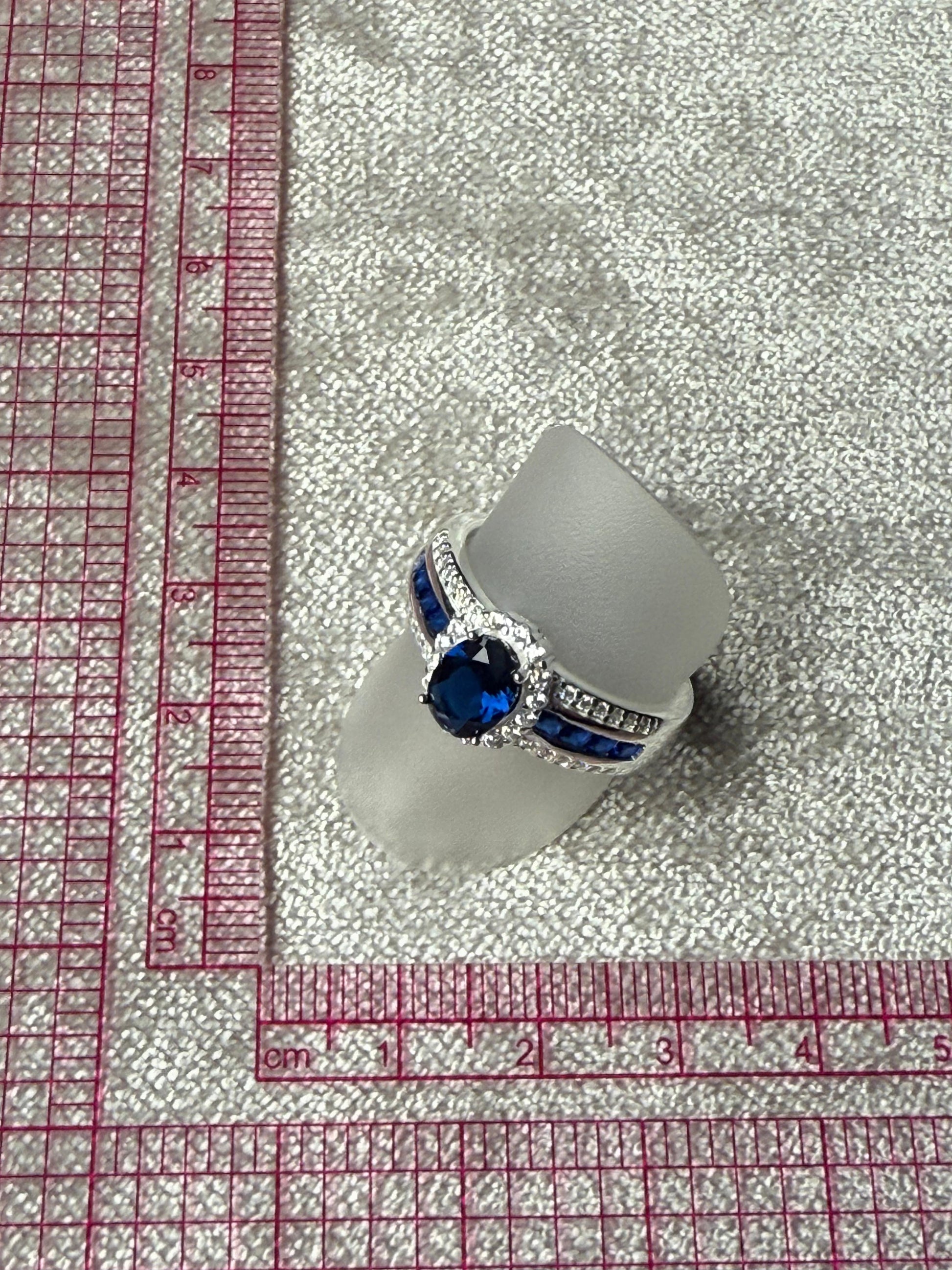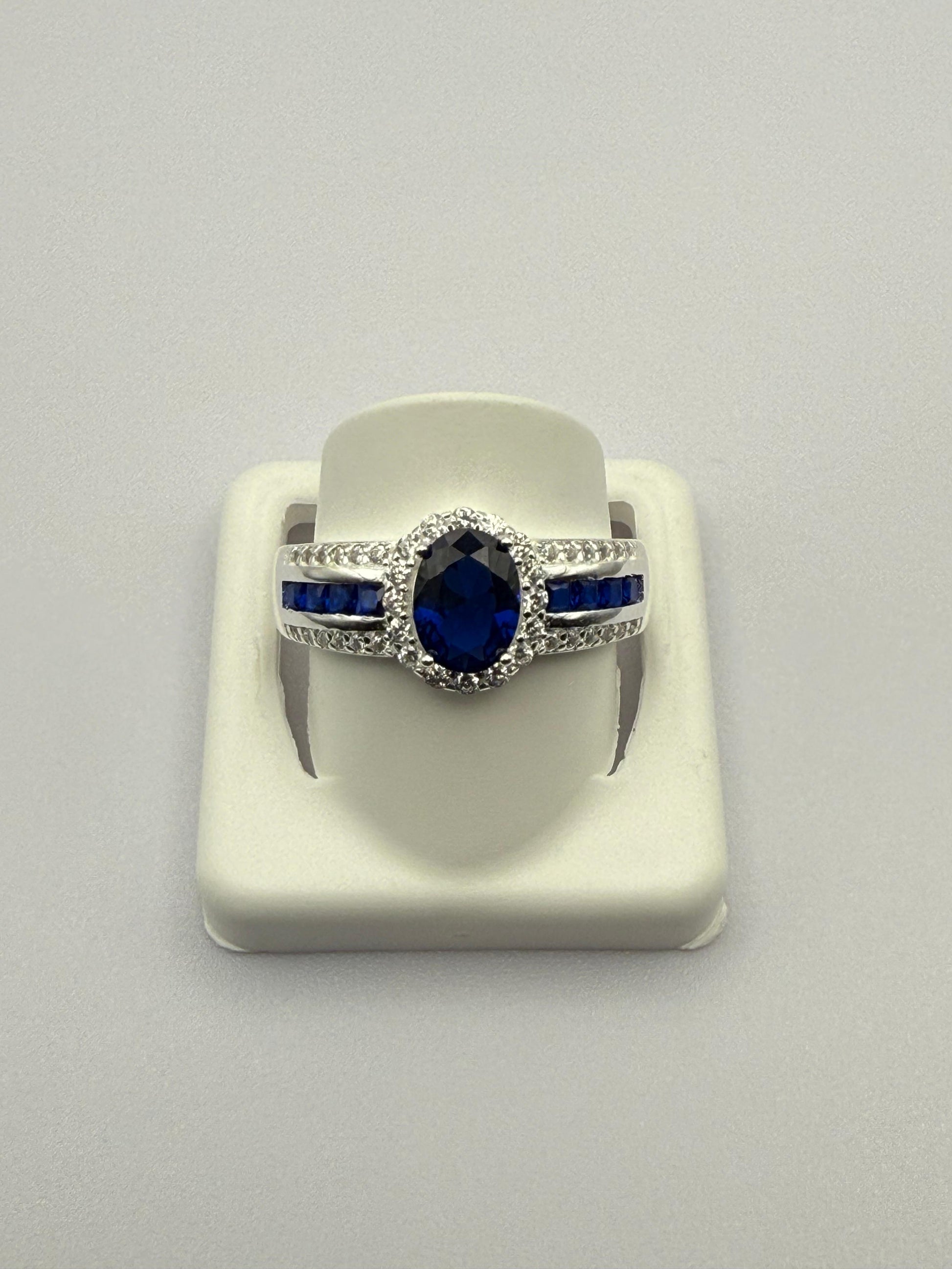 Blue and Clear C/Z Broad Ring Sterling Silver 925