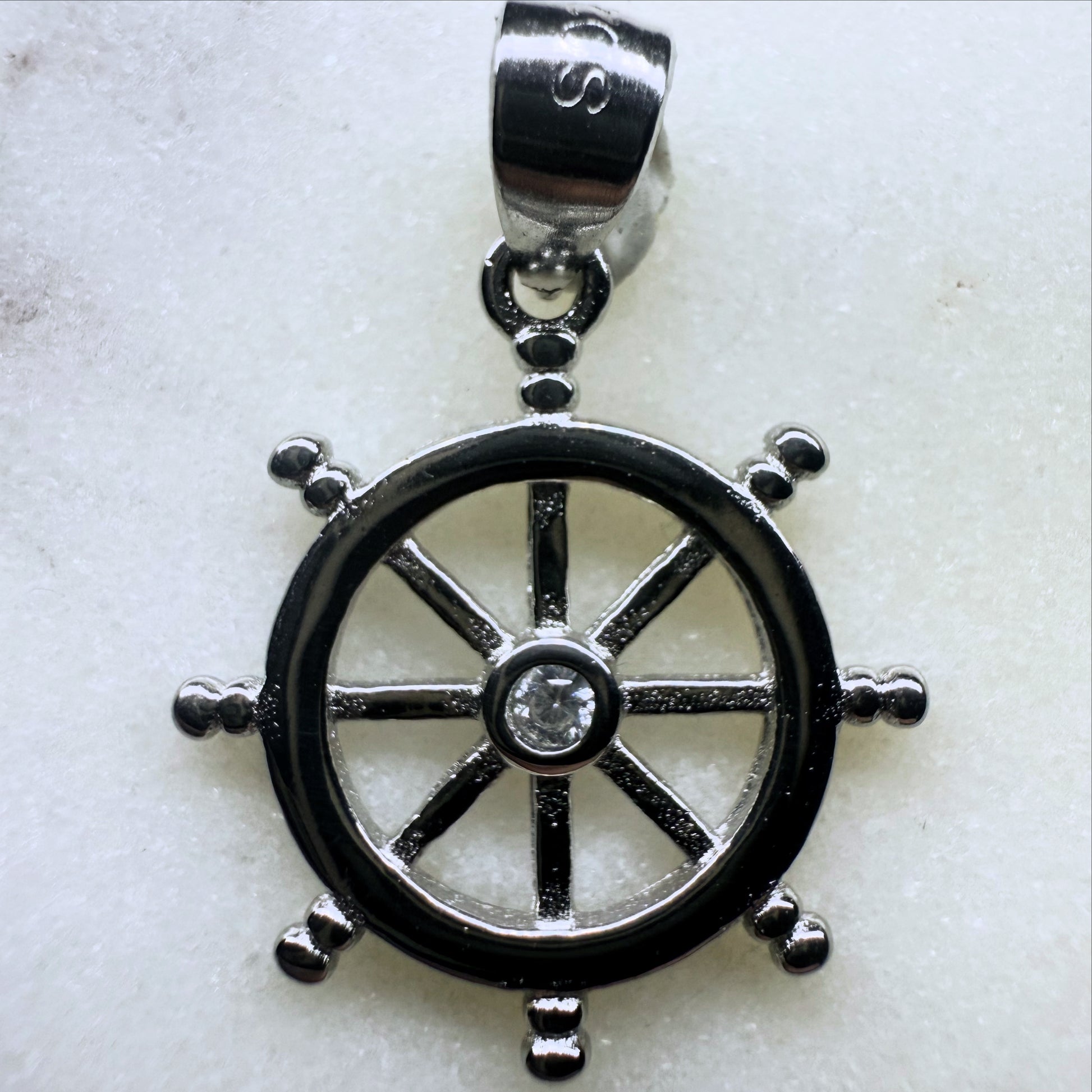 Chart your own course with the nautical charm of the Boat Helm Sterling Silver 925 Pendant, a symbol of guidance, control, and smooth sailing through life's waters. Meticulously detailed in shimmering 925 sterling silver, this pendant features the iconic spoke design of a ship's wheel, representing destiny and the ability to navigate challenges. It’s an ideal accessory for sailors, travelers, and those who feel connected to the ocean.