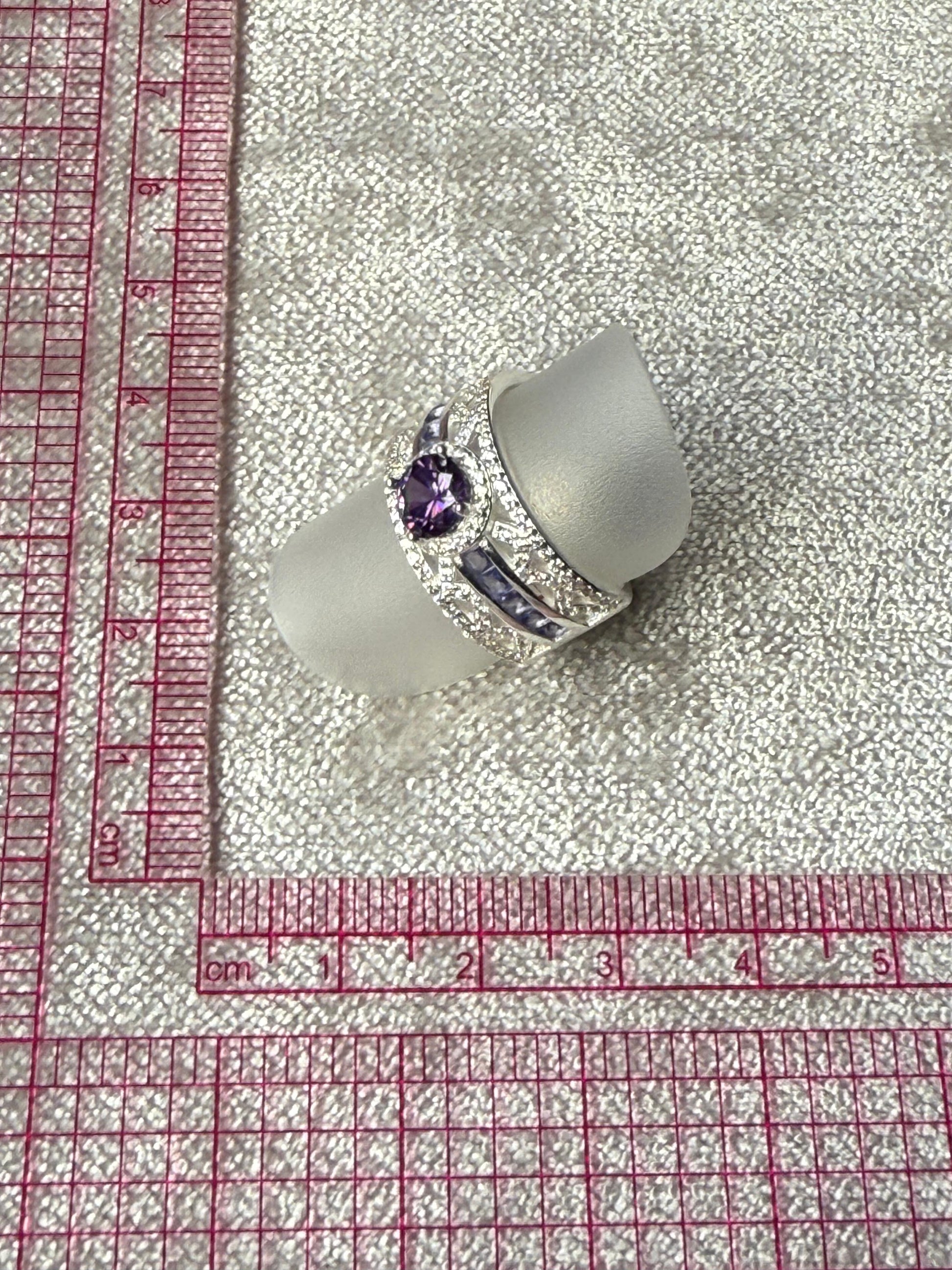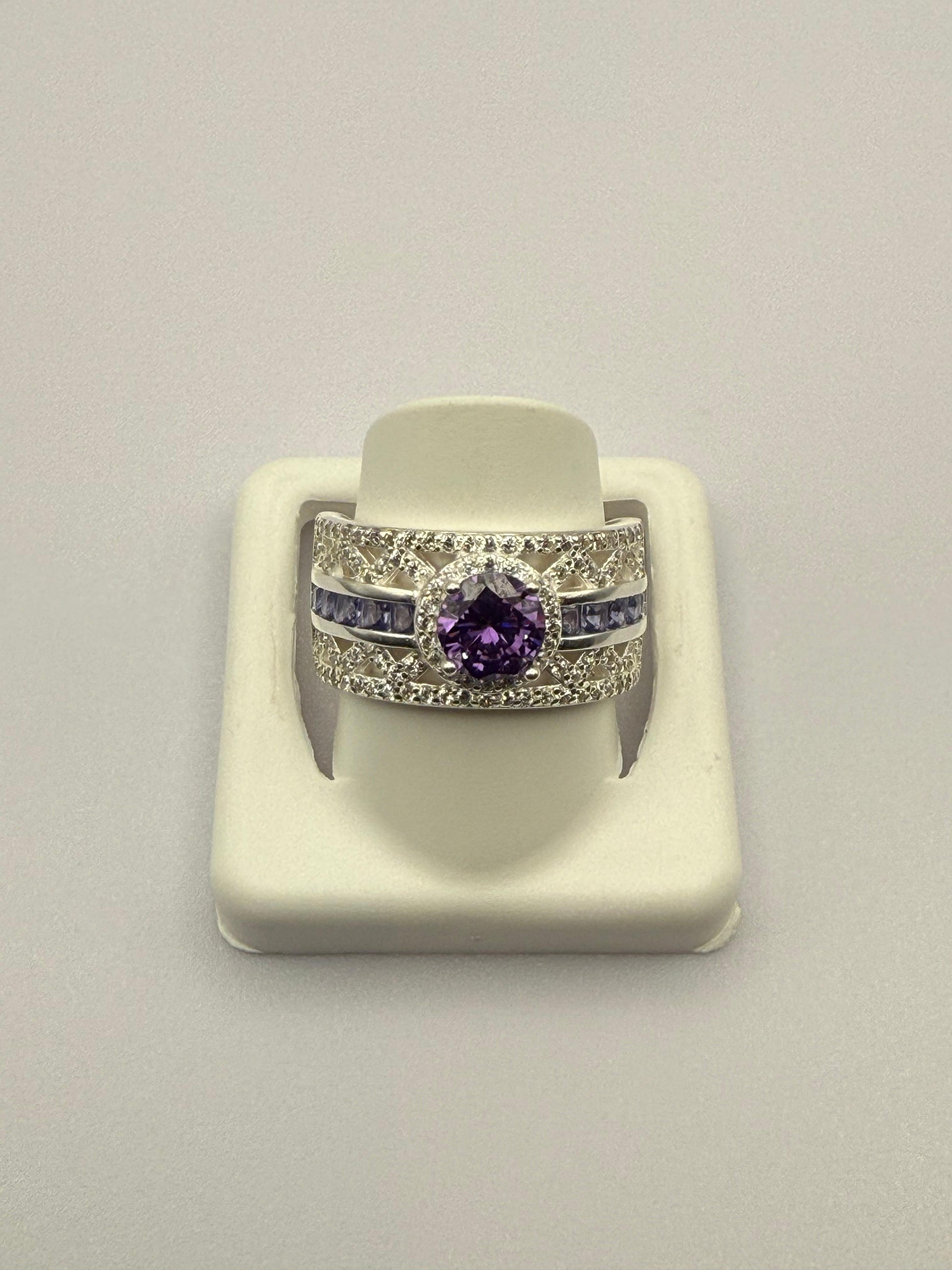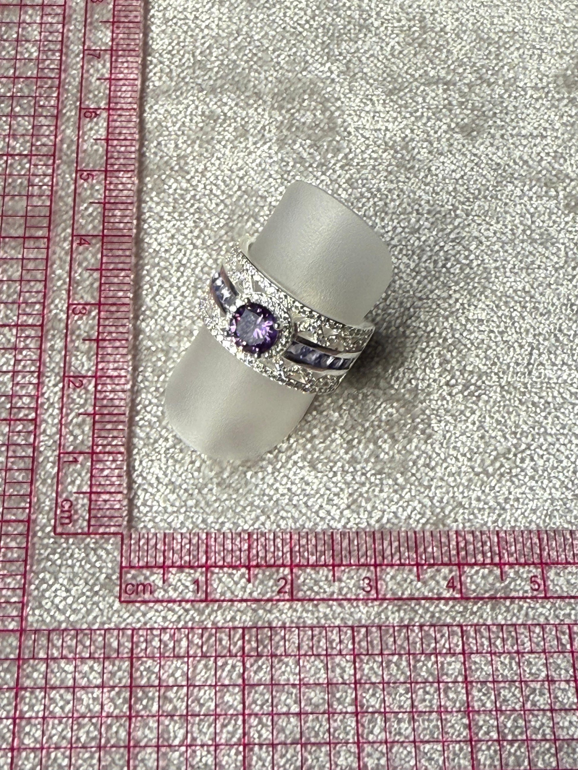 Broad LDR Purple C/Z Ring Sterling Silver 925