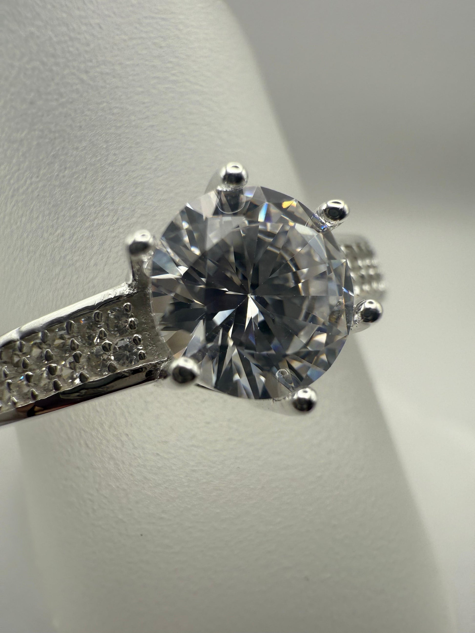 Sparkle brilliantly without breaking the bank with this classic Cubic Zirconia (C/Z) Ring, meticulously set in genuine Sterling Silver. This popular design features a dazzling C/Z stone, celebrated for its exceptional clarity and diamond-like fire, providing all the brilliance of a high-end gemstone. The high-polish Sterling Silver (.925) band offers a bright, durable, and naturally beautiful foundation that complements the stone's radiance. Whether you choose a timeless solitaire, a glamorous halo, or a subtle eternity band, this ring is the perfect piece of everyday luxury, delivering stunning visual impact and enduring quality.