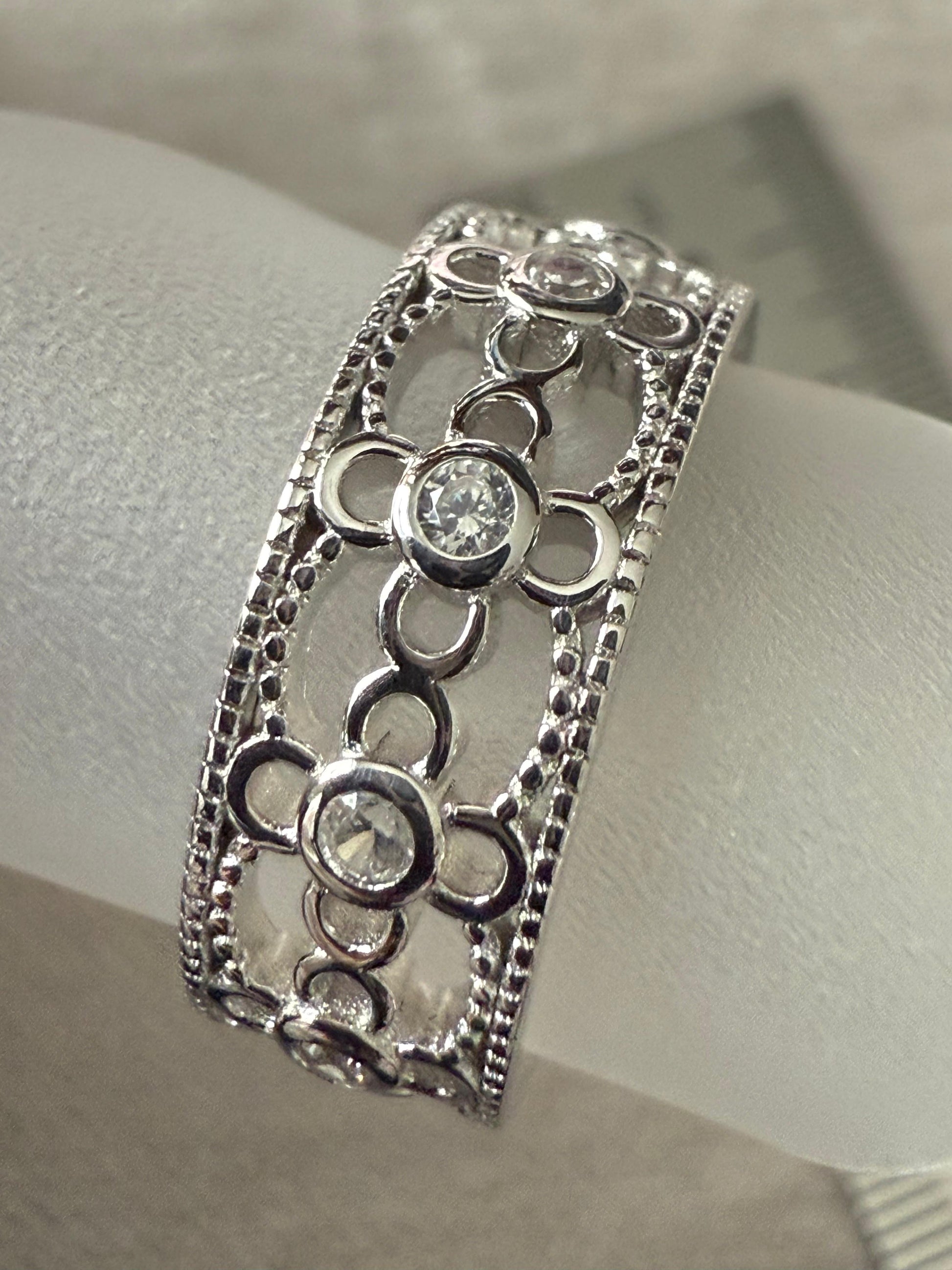 Clover Cubic Zirconia Ring Sterling Silver 925