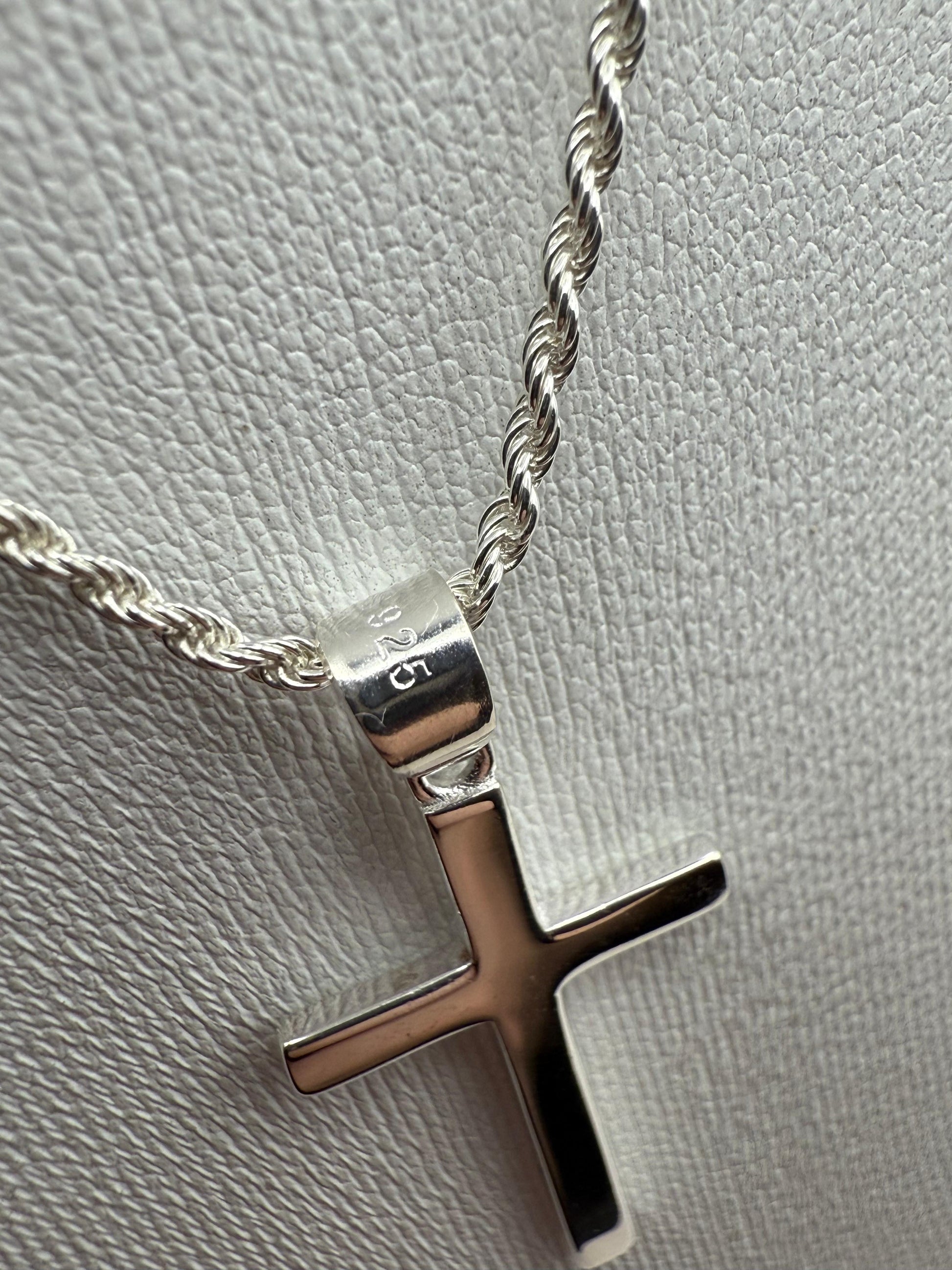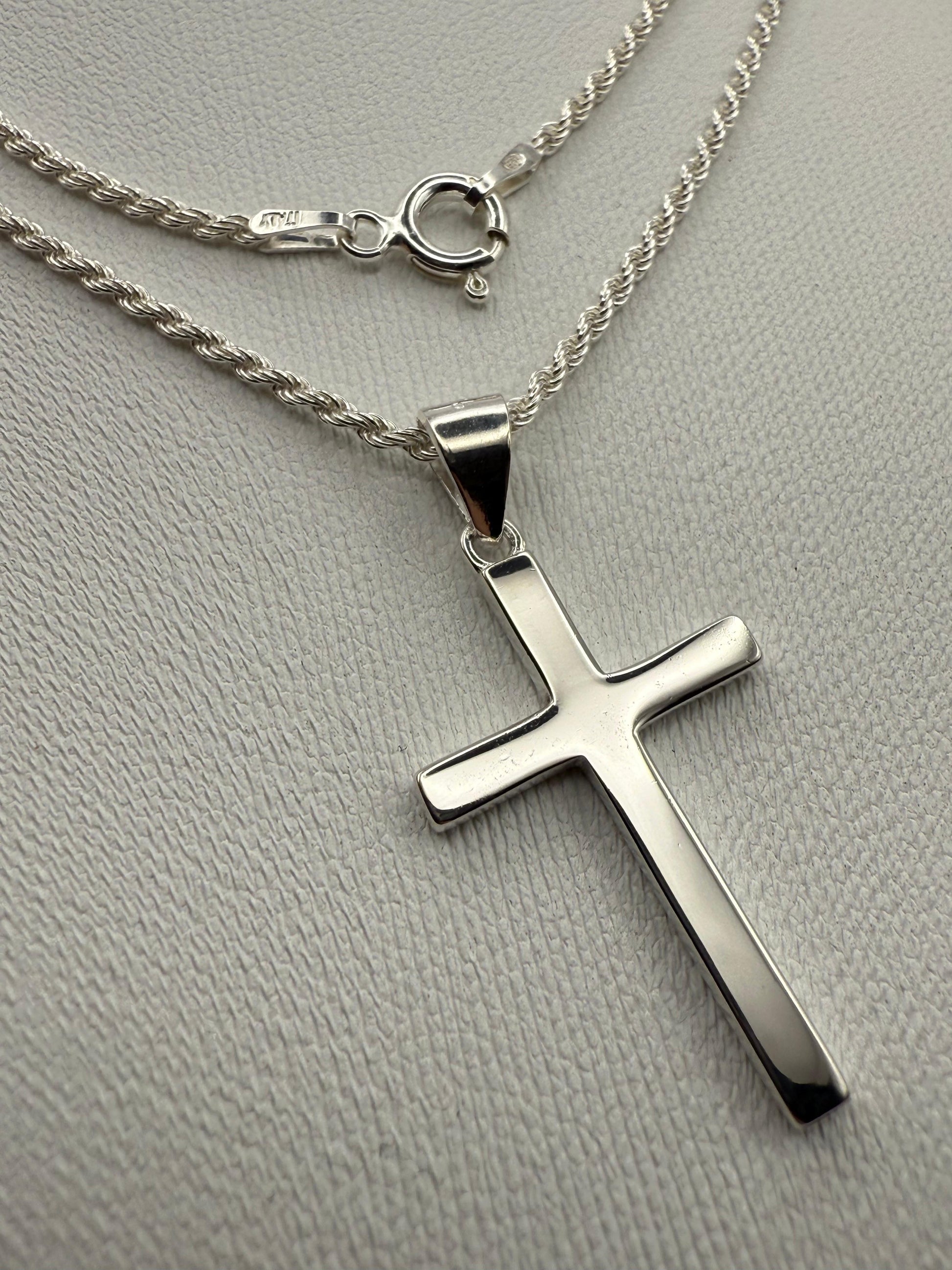 This Cross Necklace provides a clean, elegant way to wear a symbol of faith every day. The set includes a perfectly sized Cross pendant paired with a matching chain, both crafted entirely from genuine, high-quality Sterling Silver 925. The design features a simple, polished cross shape, ensuring a classic look and comfortable wear, making this a staple piece of jewellery.