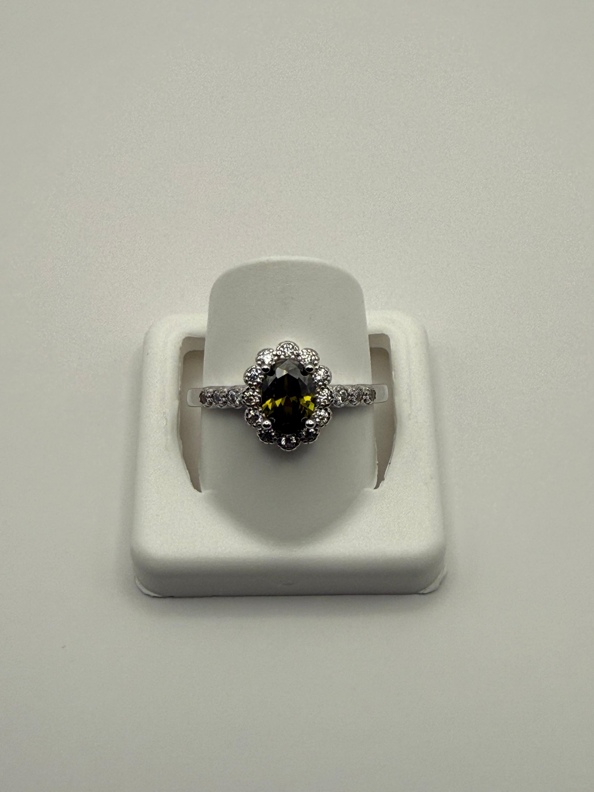 Deep Green Cubic Zirconia Ring Sterling Silver 925