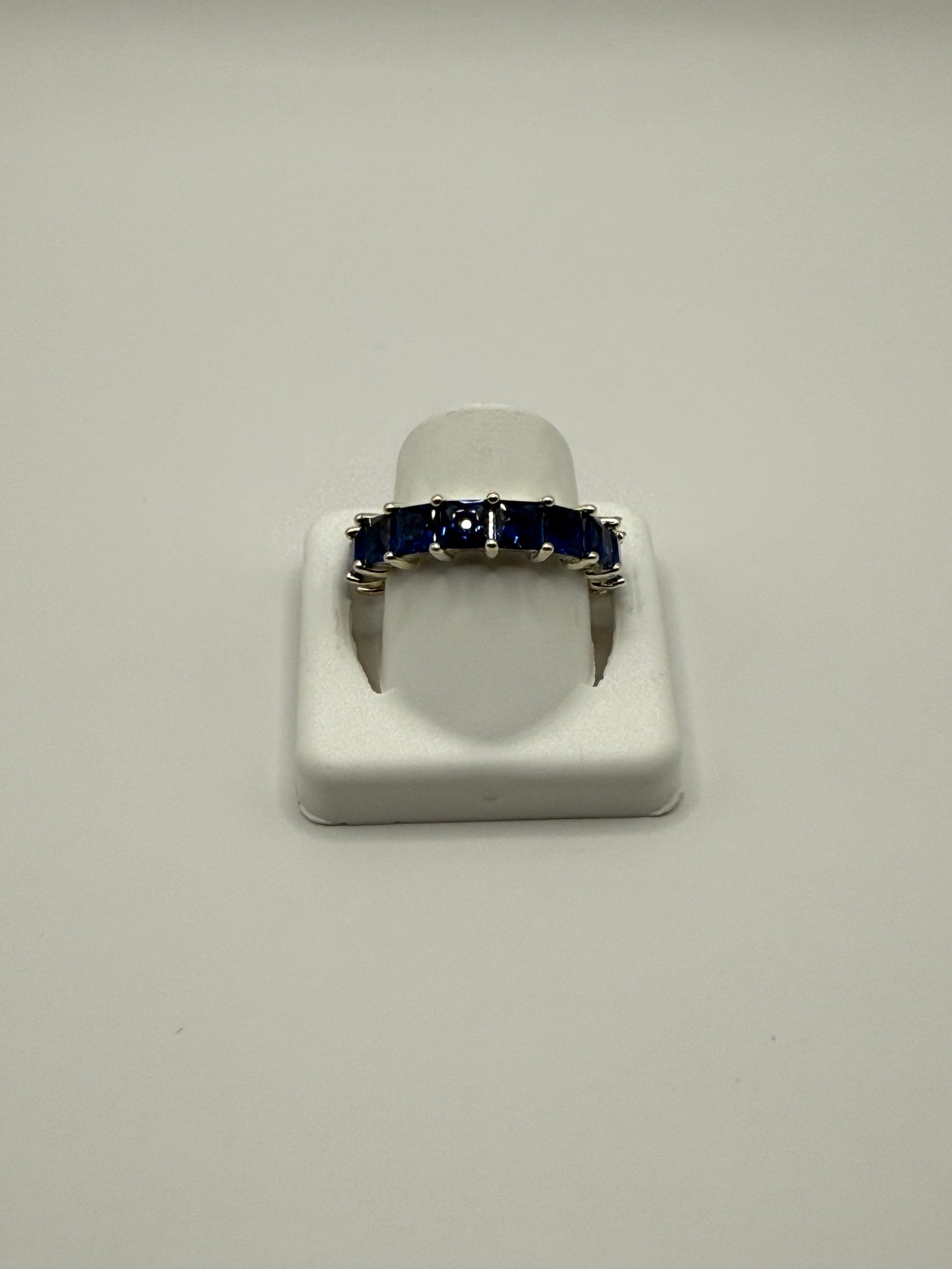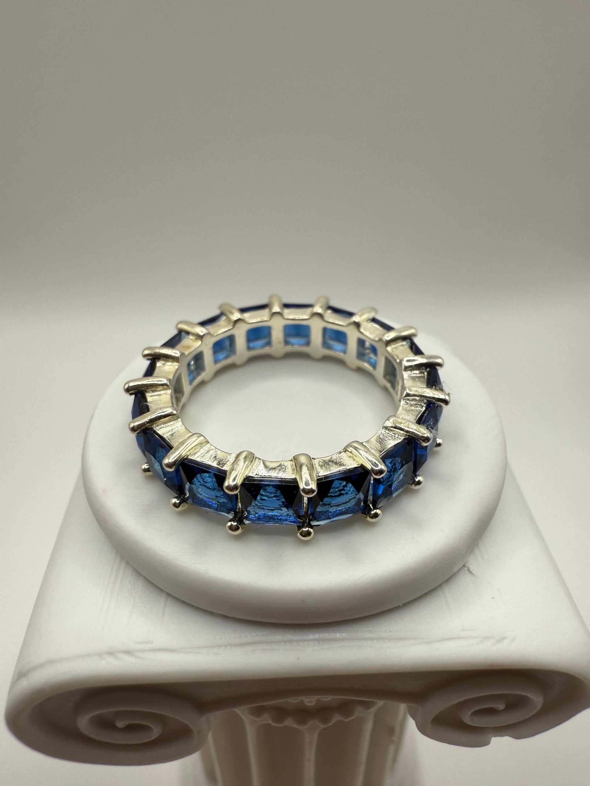 Immerse yourself in luxurious colour with the striking Eternal Deep Blue Ring, a sophisticated band designed to offer continuous sparkle in a rich, captivating hue. This exquisite ring is meticulously crafted from premium Sterling Silver 925, forming a durable and bright foundation for the expertly set, high-quality stones that define the 'Eternal' style. Featuring a stunning line of Deep Blue stones, this band offers continuous, dramatic colour and lasting brilliance, making it an elegant and unforgettable statement accessory perfect for any occasion.