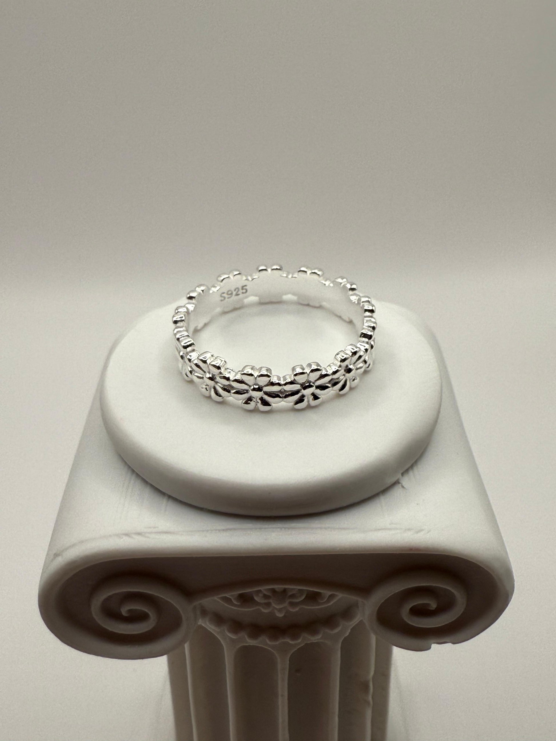Combine the timeless promise of eternity with the delicate beauty of nature in the Eternal Flower Ring, a charming accessory that offers continuous elegance. This delightful ring integrates a graceful flower motif into a continuous, band-style design, suggesting a perpetual bloom, and is crafted from genuine Sterling Silver. Ideal for stacking or wearing on its own, the design provides an intricate, feminine texture and lasting shine, making it a beautiful and meaningful piece to wear daily.