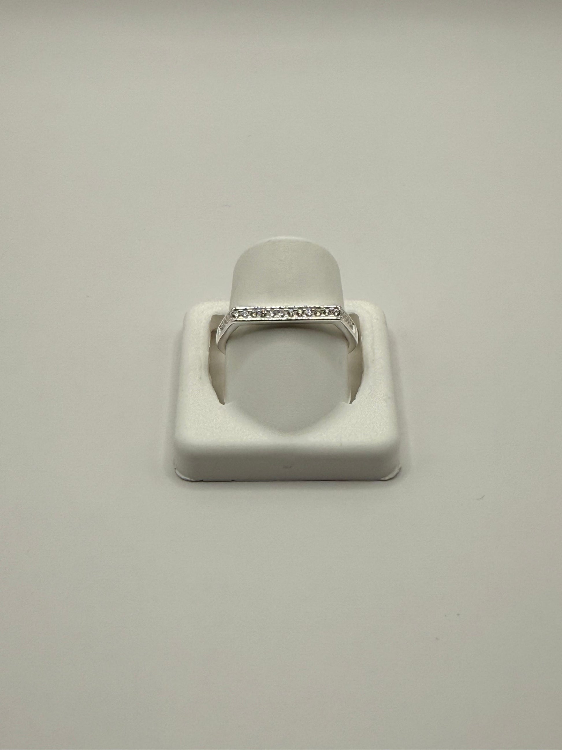 Achieve a contemporary and sophisticated look with the distinctive Flat Top Cubic Zirconia Band, a modern twist on the classic eternity style. This luxurious band is meticulously crafted from premium Sterling Silver 925, featuring a uniquely flat upper surface where high-quality Cubic Zirconia stones are expertly set, providing an uninterrupted surface of brilliant sparkle. The flat profile and continuous line of dazzling stones create a substantial and highly polished appearance that is perfect for wearing as a fashionable wedding band, a glamorous stacker, or a bold, geometric statement piece.