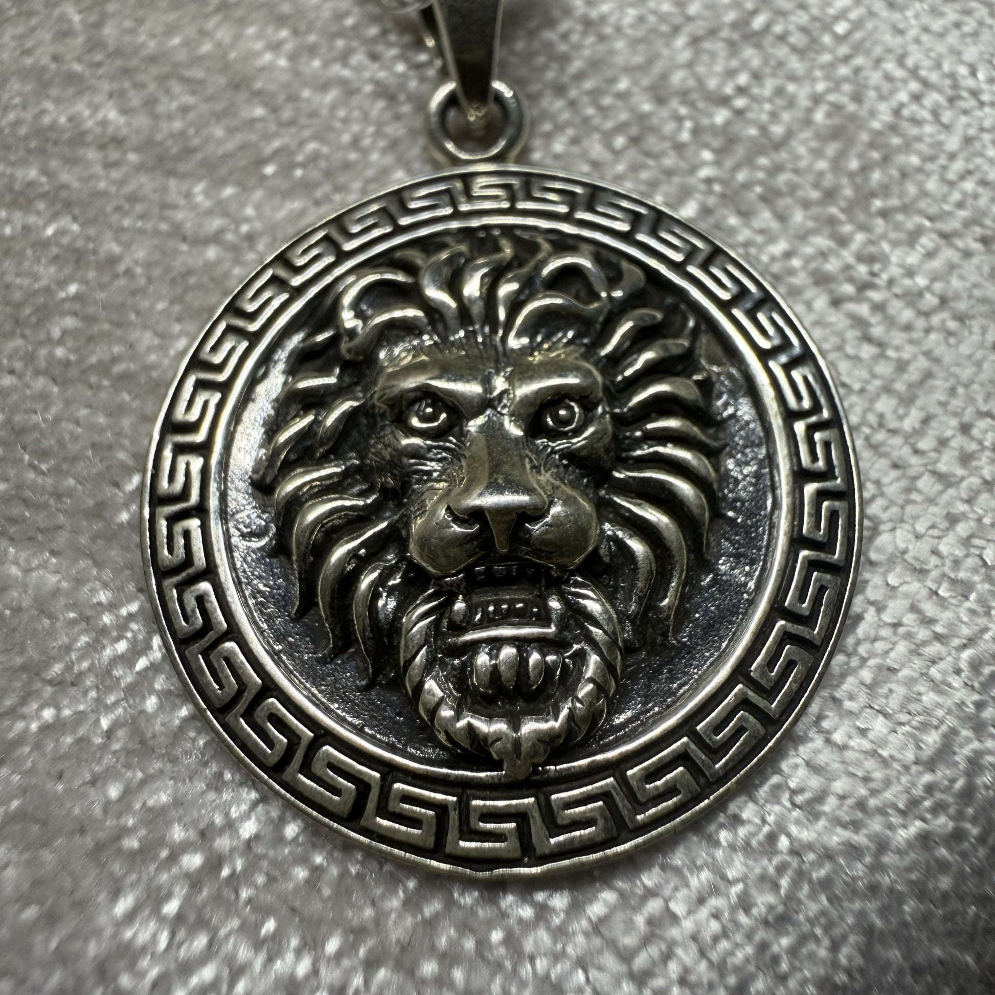 Greek-style Lion Head Sterling Silver 925 Pendant