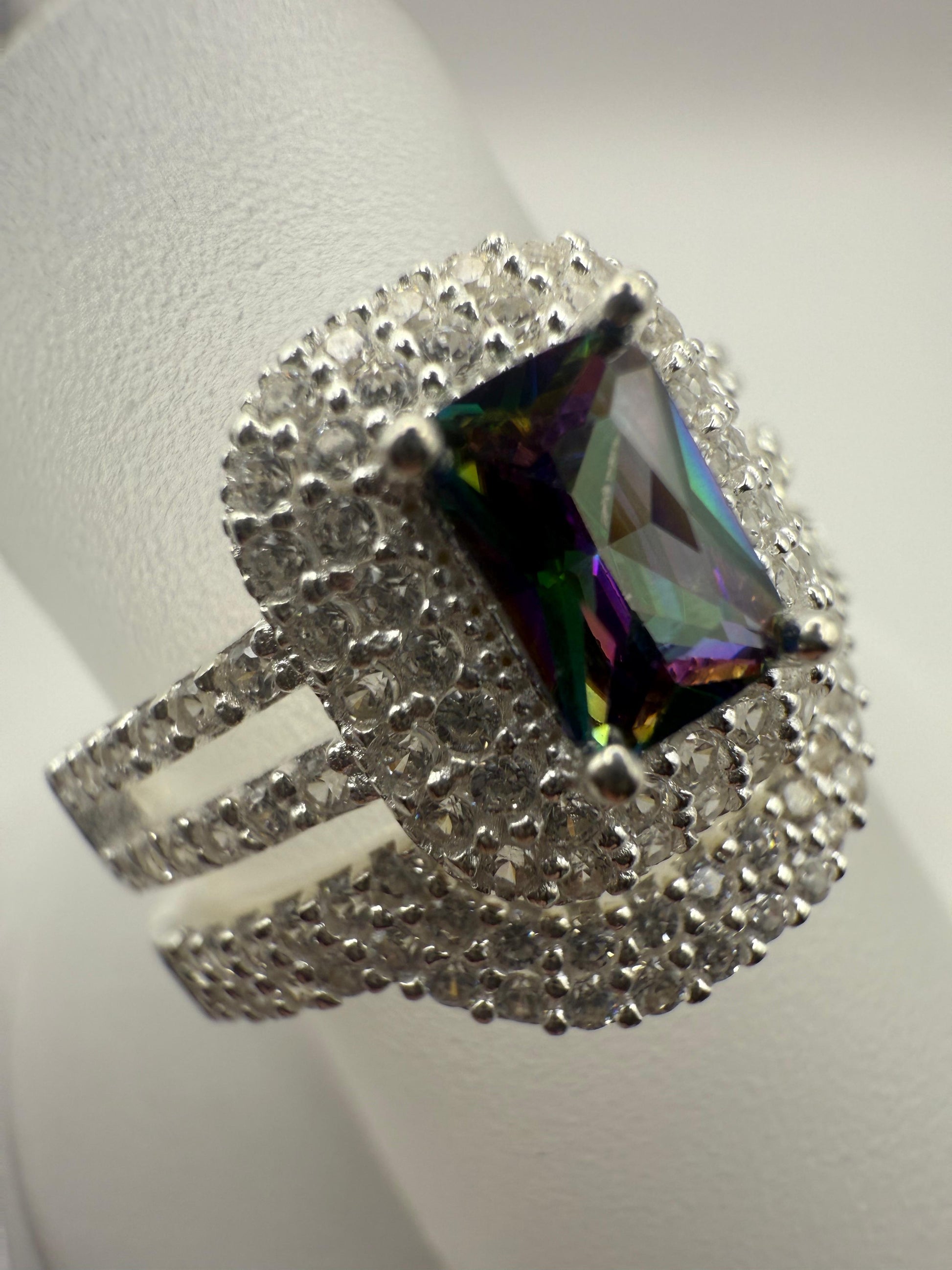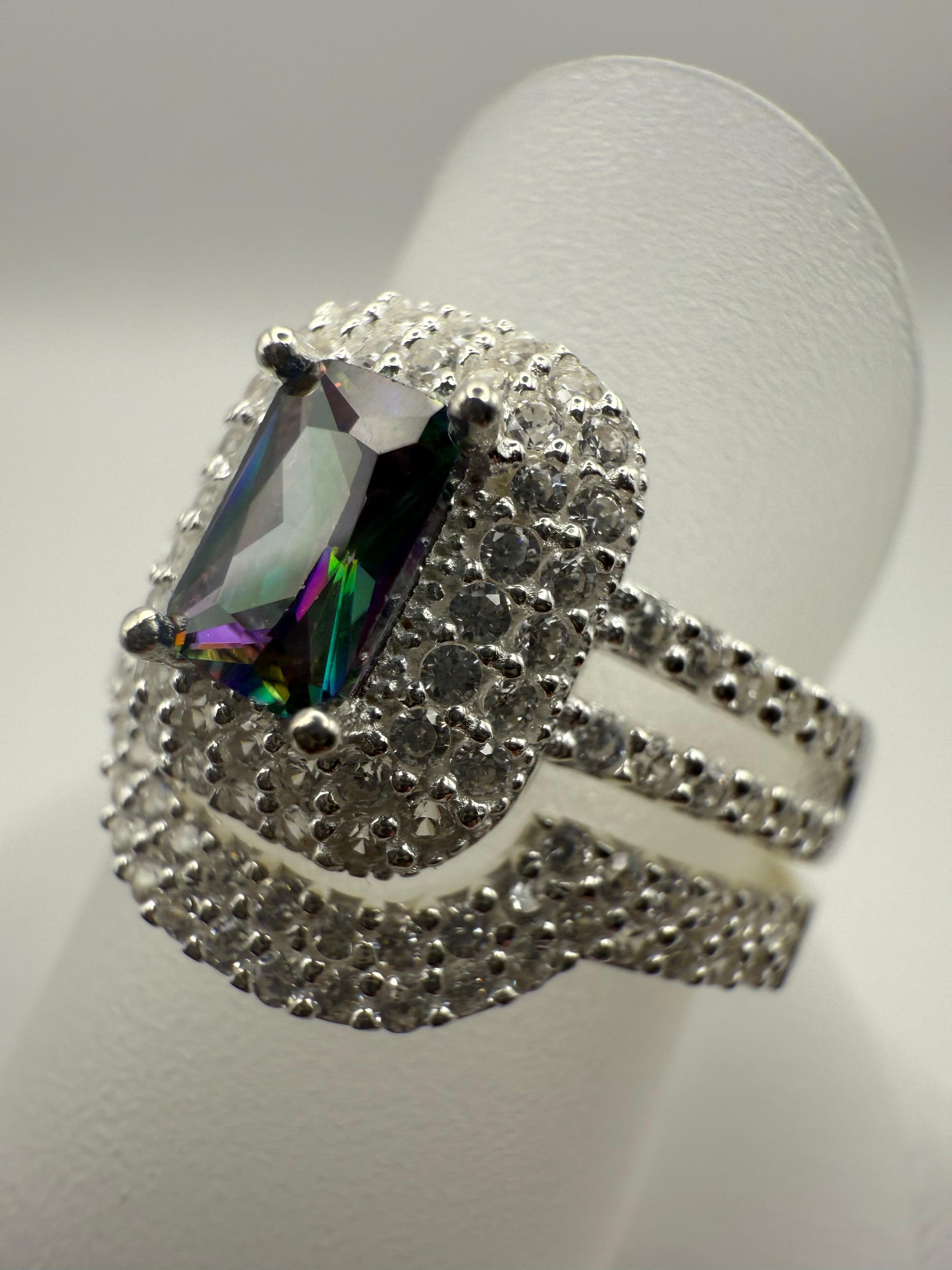 The MOD Wedding Set Ring provides a modern and perfectly coordinated symbol of commitment, featuring a seamlessly matched engagement ring and wedding band, both forged from highly polished 925 Sterling Silver. The set's contemporary design typically highlights a brilliant Cubic Zirconia (C/Z) center stone on the engagement ring, complemented by sparkling C/Z accents along the shanks, and is paired with a perfectly fitted wedding band that features a continuous line of channel-set or pavé C/Z stones. This cohesive duo is designed to be worn together for maximum visual impact and features the durability and radiant white finish of quality sterling silver, offering a stunning and affordable bridal look.