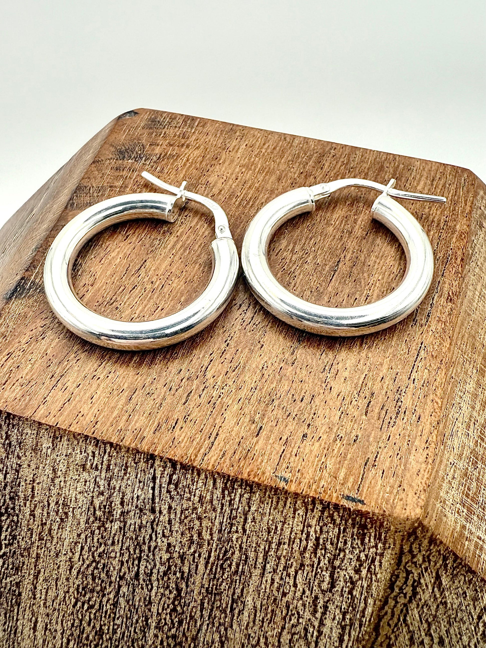 Rounded Hoop Earrings 3mm x 20mm Sterling Silver 925