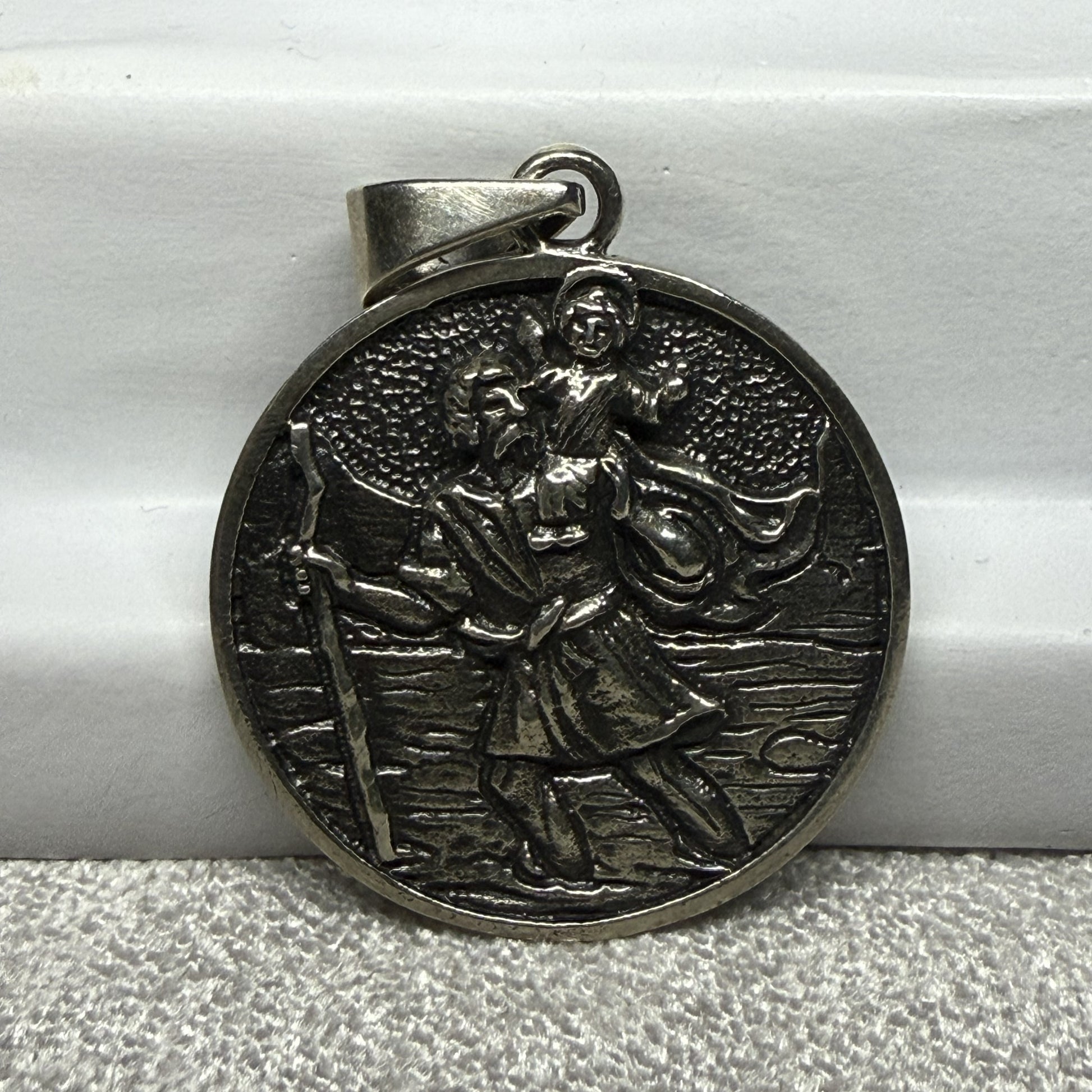 Travel safely with the classic Saint Christopher Sterling Silver 925 Pendant, the time-honored patron saint of travelers. Minted in durable 925 sterling silver, this traditional circular medallion features the detailed image of Saint Christopher carrying the Christ Child across the water, a potent symbol of protection for all journeys, both physical and spiritual. It makes an essential and cherished gift for globetrotters, commuters, and new drivers alike.