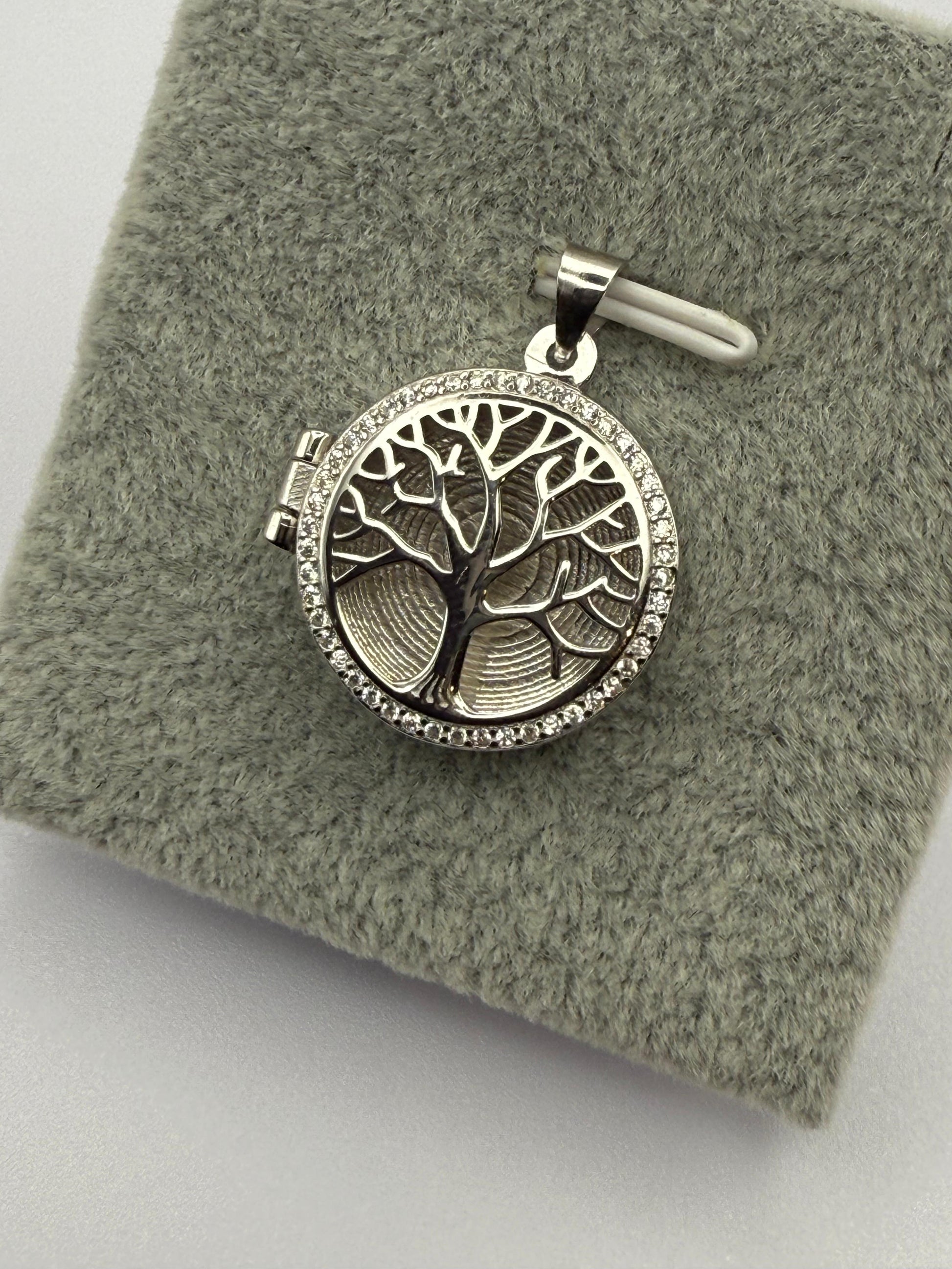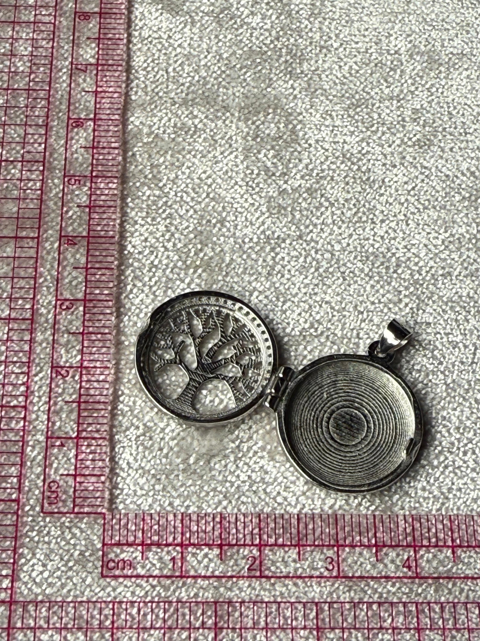 Cherish your memories and celebrate eternal connection with this meaningful Tree of Life Locket, beautifully crafted from luminous 925 sterling silver. The face of the locket features a delicately detailed Tree of Life design, symbolizing growth, family, and interconnectedness. The locket opens securely to reveal space inside for holding two precious small photographs or keepsakes, allowing you to keep loved ones and meaningful moments close to your heart. This substantial, high-polish piece is a timeless and sentimental gift, blending rich symbolism with the deeply personal function of a classic heirloom locket.